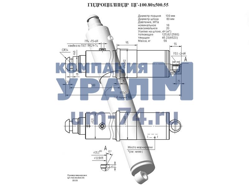 Гидроцилиндр Ц22А.000 ( ГЦ-100.80х500.55) применяется также на тракторах МТЗ, на буровых установках.