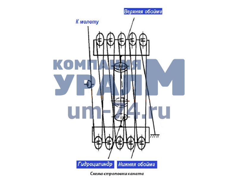 Снизу плоскости приварена труба для присоединения к штоку гидравлического цилиндра. Наверху имеется ограждение, препятствующее скатыванию каната с блоков.